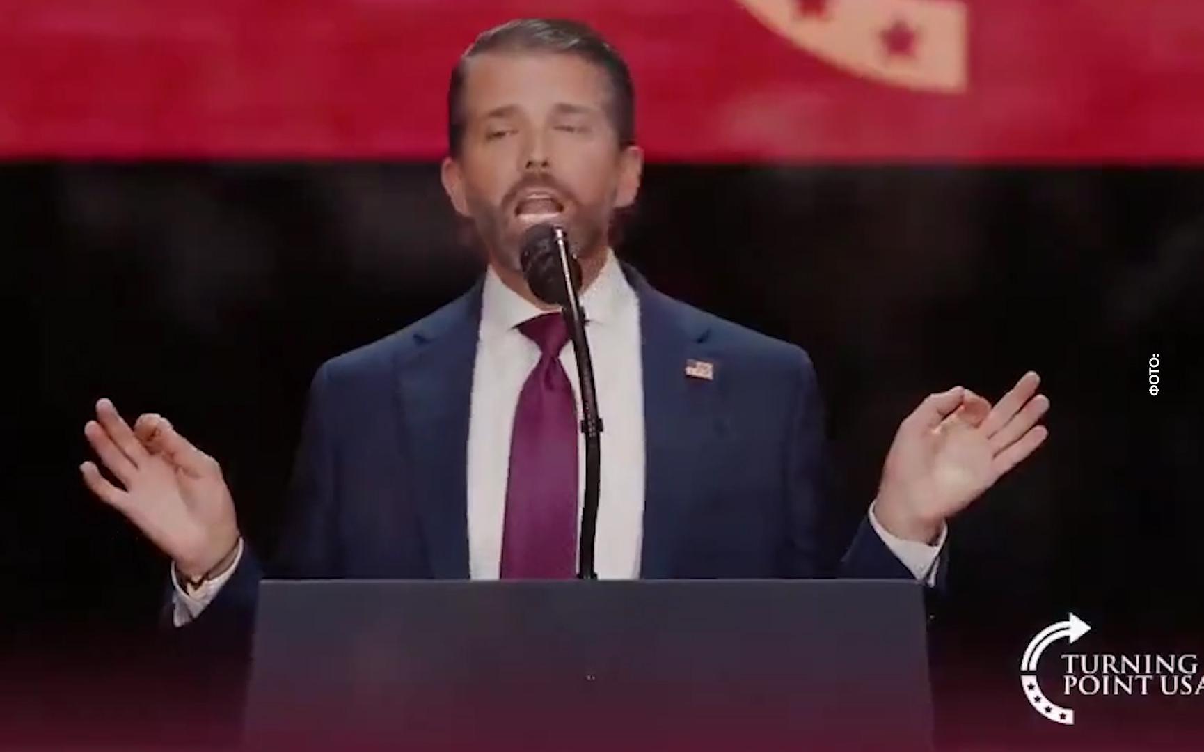 РБК22.09.2025 12:46 Сын Трампа спародировал отца на церемонии прощания с Кирком